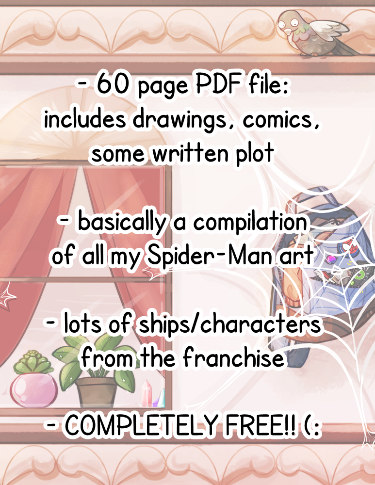 A compilation of all of the Spider-Man art from my personal AU, most of which have never been posted online! Focuses mainly on Peter Parker's story and the various people in his life, but features a little bit of Miles Morales and his universe as well. Includes some written plot, drawings, and comics inspired by the franchise.Β
